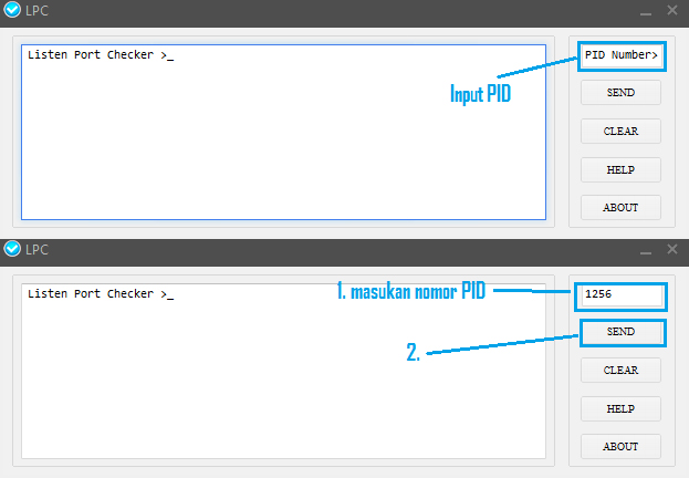 4. Buka Listen Port Checker, masukkan PID Inject ke kolom PID Number di bagian kanan atas, lalu klik Send