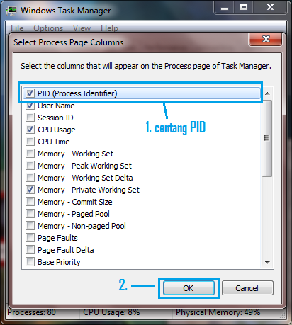 Task Manager>View>Select Columns> Centang PID ( Process Identifier ) > OK